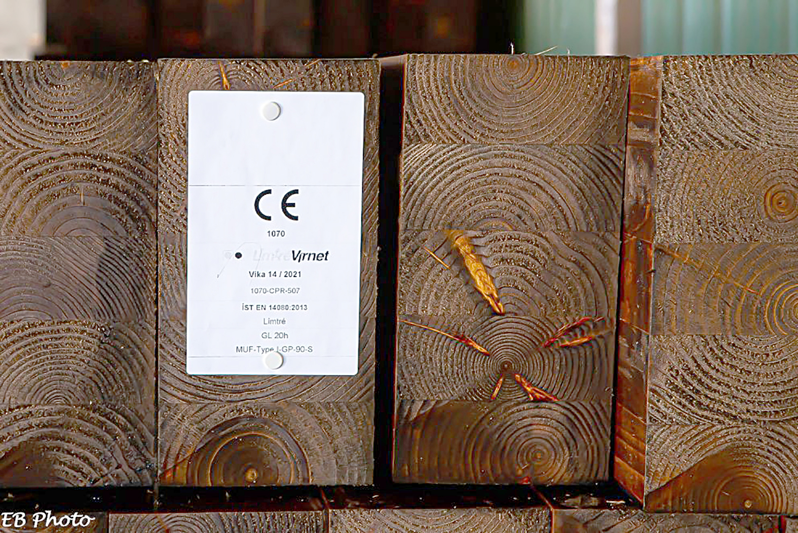 Þetta eru nokkur tímamót því Límtré Vírnet hefur nú fengið alþjóðlega vottun á framleiðslu límtrés úr íslensku sitkagreni í verksmiðju sinni á Flúðum í Hrunamannahreppi.